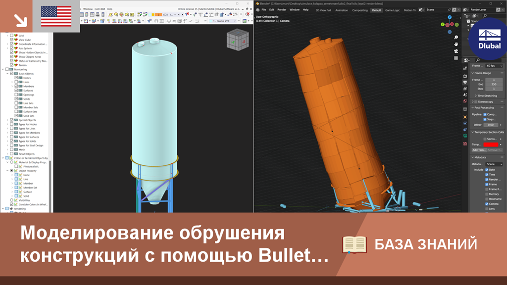 Цель использования RFEM 6 и Blender с аддоном Bullet Constraints Builder - получить графическое представление обрушения модели на основе реальных данных о физических свойствах. RFEM 6 служит источником геометрии и данных для моделирования.