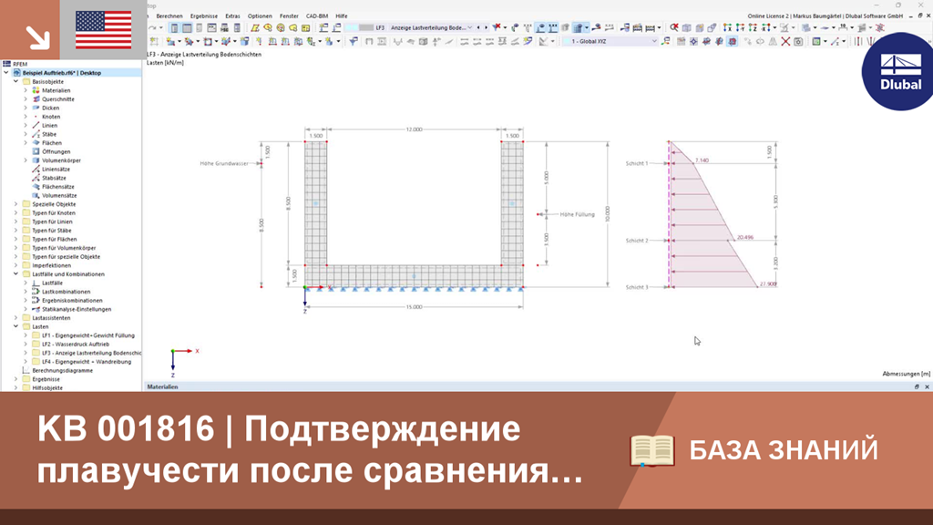 В этом видео показано, как в программе RFEM проверить устойчивость железобетонного контейнера к плавучести.