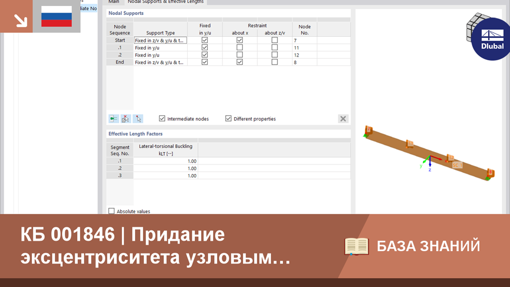 В этом ВИДЕО представлена специфичная для RFEM 6 функция, с помощью которой вы можете назначить эксцентриситет узловым опорам и, таким образом, повлиять на определение расчетной длины, учитываемой при расчете устойчивости.
