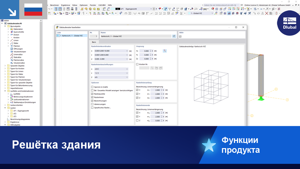 Направляющий объект «Решётка здания» поможет вам при проектировании конструкции. Он имеет интуитивно понятный ввод координат решётки и маркировку линий решётки.