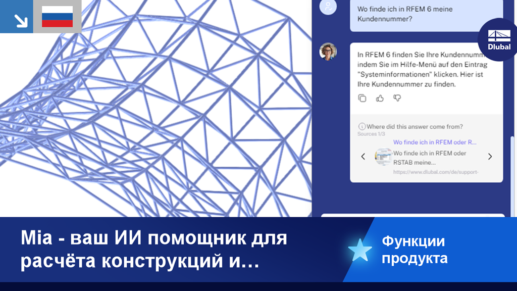 Mia - это ИИ помощник Dlubal, доступный не только на сайте, но и непосредственно в программах RFEM, RSTAB и RSECTION.