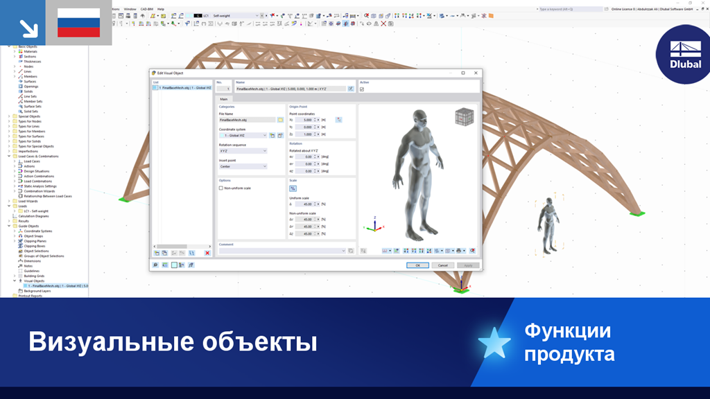 В RFEM 6 и RSTAB 9 у вас есть возможность вставить «Визуальные объекты» в качестве направляющих объектов. Можно импортировать файлы в форматах 3ds, stl и obj.