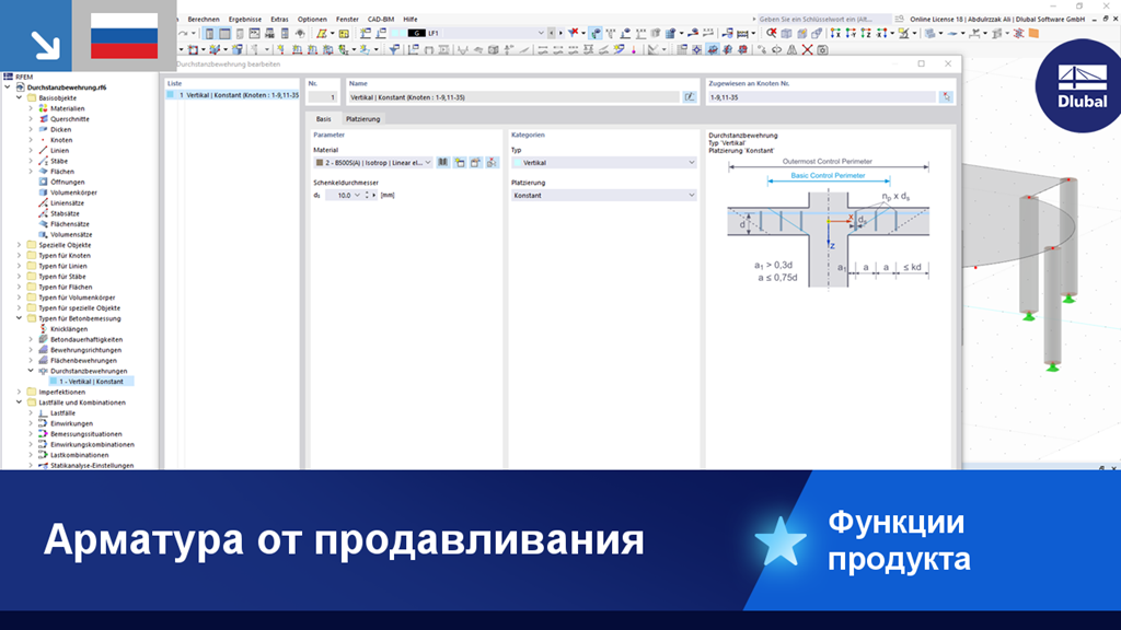 В аддоне Расчёт железобетонных конструкций у вас есть возможность задать существующую вертикально ориентированную арматуру на продавливание. Это затем учитывается при расчёте на продавливание.