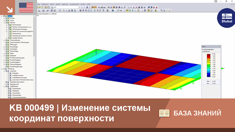 Соответствующая система координат затем гарантирует, что распределения внутренних сил имеют одинаковый алгебраический знак, благодаря чему можно в железобетонных моделях четко определить верхний и нижний слой арматуры.