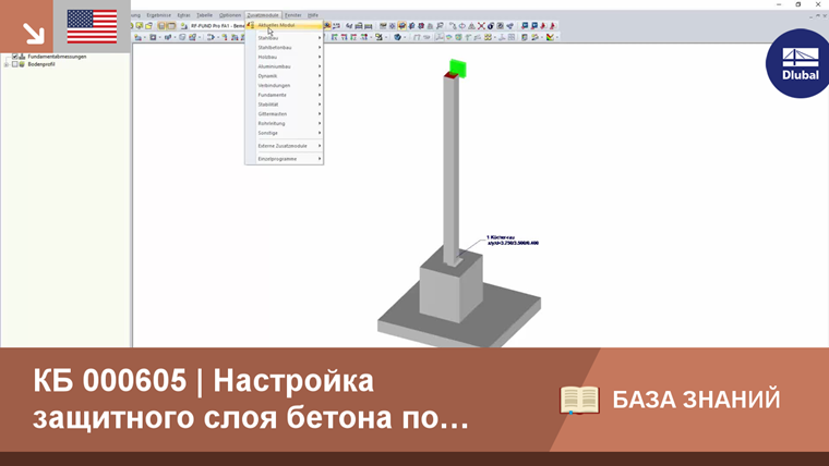 Бетонное покрытие, показанное в окне 1.3 «Материалы», также можно изменить. Однако, если активировано минимальное защитное покрытие бетона, вы можете увеличить его только вручную.