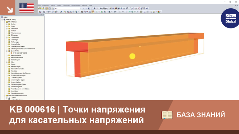 Точки напряжения, расположенные внутри сечения, не позволяют сделать вышеупомянутое предположение о том, что напряжение сдвига проходит параллельно стенке сечения. В данном случае применяется специальный метод с двойными точками напряжения, в результате чего в сечении создаются две точки напряжения с одинаковыми координатами. Der eine Spannungspunkt erfasst das statische Moment um die Achse y (Parameter für Schubspannung infolge vertikaler Querkraft), der andere das statische Moment um die Achse z (Parameter für Schubspannung infolge horizontaler Querkraft). Для этих точек напряжения дополнительный статический момент равен нулю.
