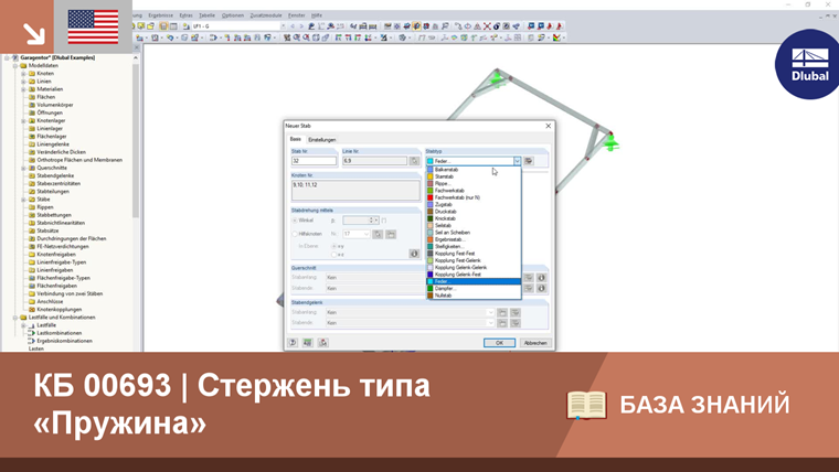 С помощью данной опции, можно в расчётной модели смоделировать пружины в форме стержней. Der Federstab wirkt ähnlich wie ein Pendelstab im Gesamtsystem und setzt seine Federeigenschaft über die Stablängsrichtung um.