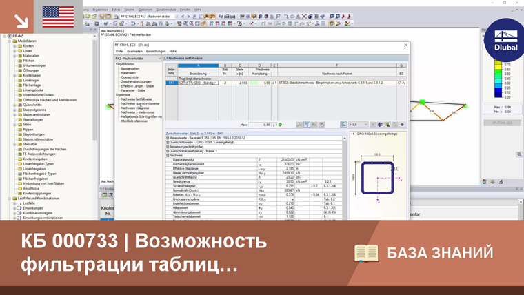 Определение фильтра в таблице результатов можно использовать для отображения максимальных расчетных коэффициентов. В таблице результатов с отображением результатов по стержням, максимальный расчет по стержням отображается только тогда, когда фильтр активен. Таким образом можно значительно уменьшить и упорядочить результаты.