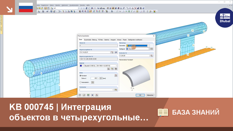 К счастью, программа RFEM предлагает своим пользователям другую функцию, которая может значительно упростить интеграцию объектов в четырехугольные поверхности. Нажав на кнопку [Интегрировать все объекты], программа RFEM определит все узлы, линии и отверстия, геометрия которых подходит для интеграции. Они затем появятся в списке интегрированных объектов, который можно легко проверить.