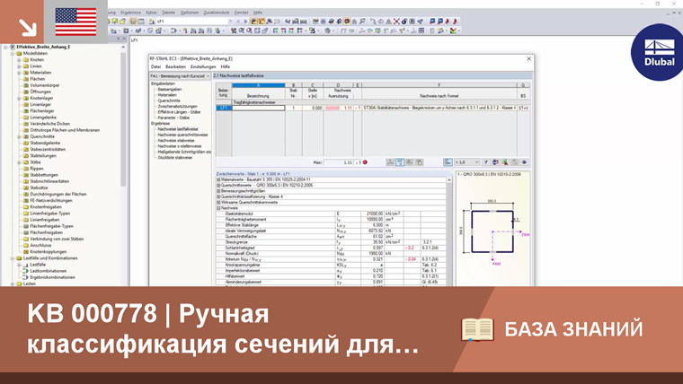 Классификация сечений класса 1 или 2 вручную по классу сечения 3 также может быть использована для принудительного расчета в дополнительном модуле. Однако, если вы хотите применить это к любому сечению, предпочтительнее выбрать концепцию упругого расчета в подробных настройках дополнительного модуля.