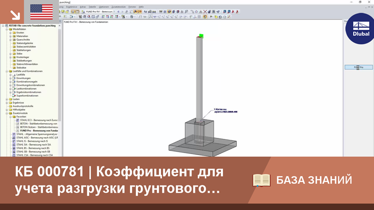 Согласно DIN EN 1992‑1‑1, сумма давлений грунта в пределах продавливающего конуса может быть принята как имеющая разгрузочный эффект, равный 100%, если критический периметр в расчете продавливания фундаментной плиты определяется итеративно. Если для упрощения расчета взять постоянный контрольный периметр на расстоянии 1,0 d, можно предположить, что 50% суммы давлений грунта в пределах постоянного контрольного периметра оказывает разгрузочный эффект.