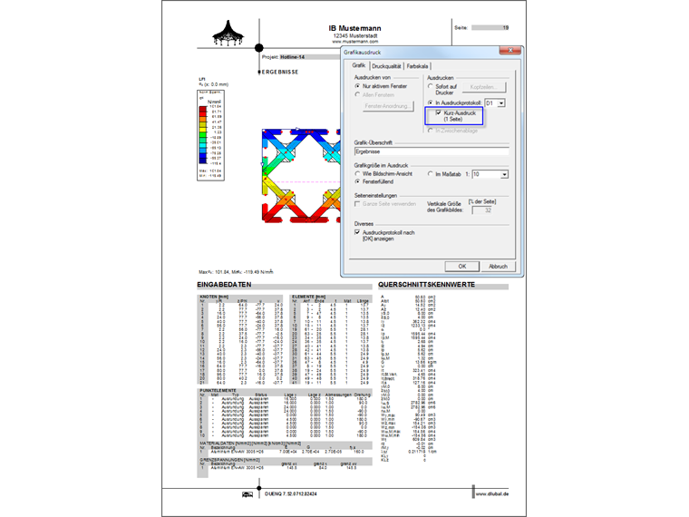С помощью функции «Сводный отчет» актуальная графика сечения, а также наиболее важные входные и выходные данные отображаются на одной странице.