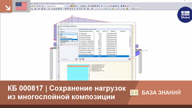 In der Mehrschichtaufbau-Bibliothek sind bereits einige Fußboden- und Dachaufbauten enthalten. Тем не менее, данную библиотеку можно по желанию редактировать и расширять. Damit sie nicht von jedem Mitarbeiter in einer Firma neu angelegt werden muss, besteht die Möglichkeit, die Datei, in welche benutzerdefinierte Aufbauten gespeichert werden, auch auf andere Rechner zu verteilen. Dazu muss die Datei "MultiLayer_User.db3" in das gleiche Verzeichnis für die Mehrschichtaufbau-Bibliothek auf dem neuen Rechner kopiert werden. Überprüfen kann man dies, indem man in den "Programmoptionen" die jeweiligen Datenbank-Verzeichnisse anzeigt.