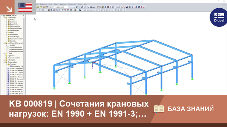Функция автоматического создания сочетаний в программе RFEM и RSTAB по норме «EN 1990 + EN 1991‑3; Краны» позволяет легко рассчитывать как подкрановые балки, так и опорные нагрузки на всю остальную конструкцию.