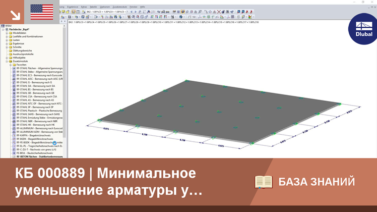 Тем не менее, уменьшение минимального армирования регулируется только в национальных прикладных документах Германии и Австрии. Для других стран, применяющих Еврокод 2 для расчета железобетонных конструкций, данное уменьшение арматуры не предусмотрено. Таким образом, применить минимальное уменьшение арматуры в модуле RF -CONCRETE или CONCRETE можно только в случае выбора одного из национальных приложений для DIN EN 1992-1-1/NA: 2013-04 (Германия) и ÖNORM B 1992-1- 1: 2011‑12 (Австрия).