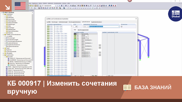 Для сочетаний нагрузок можно добавить или вставить коэффициенты для включенных загружений.