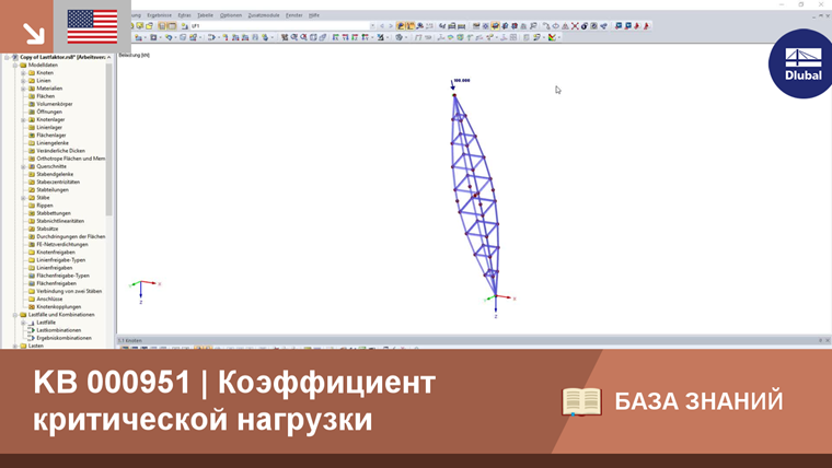 Коэффициент критической нагрузки указывает на число, на которое должна быть умножена нагрузка, чтобы модель при соответствующей нагрузке стала неустойчивой (потеря устойчивости).