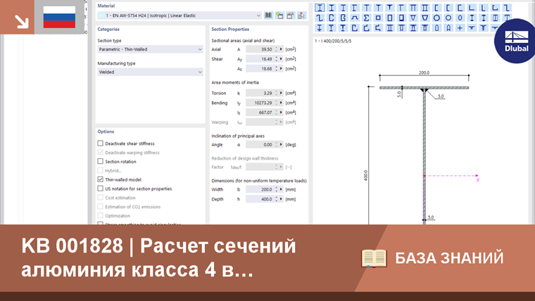 Новой опцией в программе RFEM 6 является расчёт алюминиевых профилей класса 4 по норме EN 1999-1-1 [1]. Эта функция предоставляет следующие возможности: