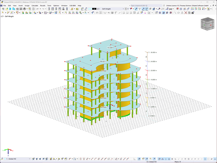 Анализ второго порядка должен учитываться напрямую. Вы можете сделать это, настроив геометрическую матрицу жесткости в RFEM 6 и RSTAB 9. Дополнительную информацию вы найдете в этой статье Базы знаний: КБ | Berücksichtigung der Theorie II. Ordnung in einer dynamischen Analyse in RFEM 6 und RSTAB 9.