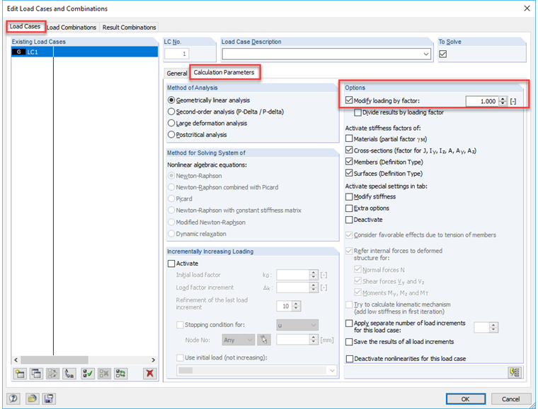 Das gleiche gilt für den Faktor von Lastkombinationen.