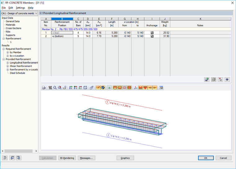 Полученная концепция армирования затем численно отображается в соответствующей таблице, а также визуализируется во форме 3D эскиза.