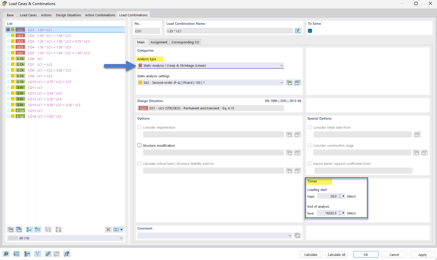这可以让您计算当前荷载组合中永久作用部分的蠕变,而其余荷载则不考虑蠕变。