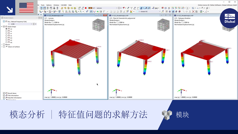 该方法是特征值问题的解析解。 这种方法的主要优点是可以计算出较高特征值的精度,并且可以确定模型的所有特征值。 对于较大的模型,此方法非常耗时。