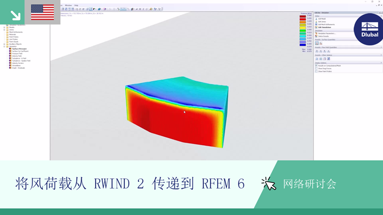 - 使用“计算风模拟”功能将与某一荷载工况相关的模型数据导出到 RWIND 3 程序中。
