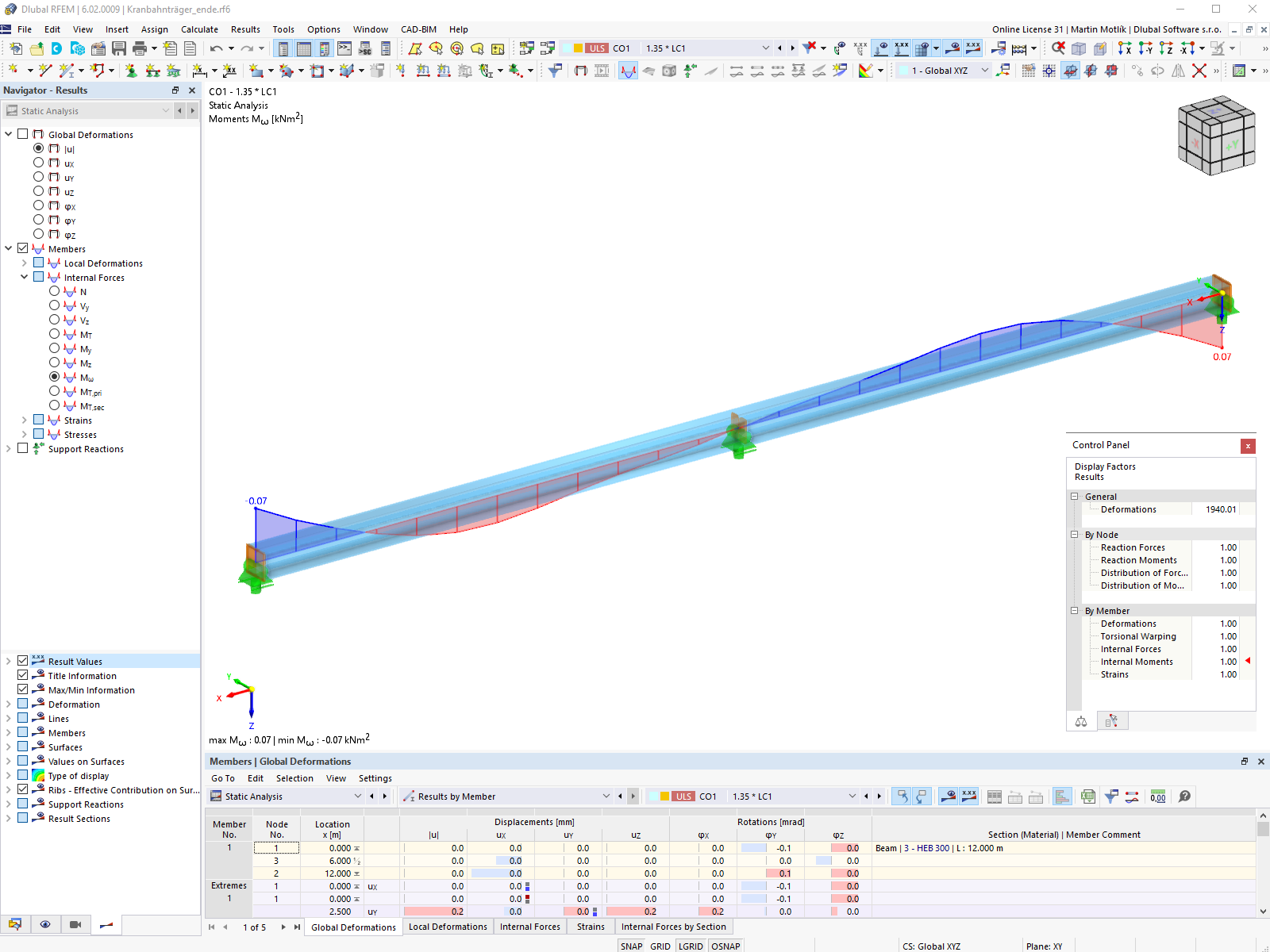 吊车梁 | RFEM 6 中的翘曲扭转(7 个自由度)
