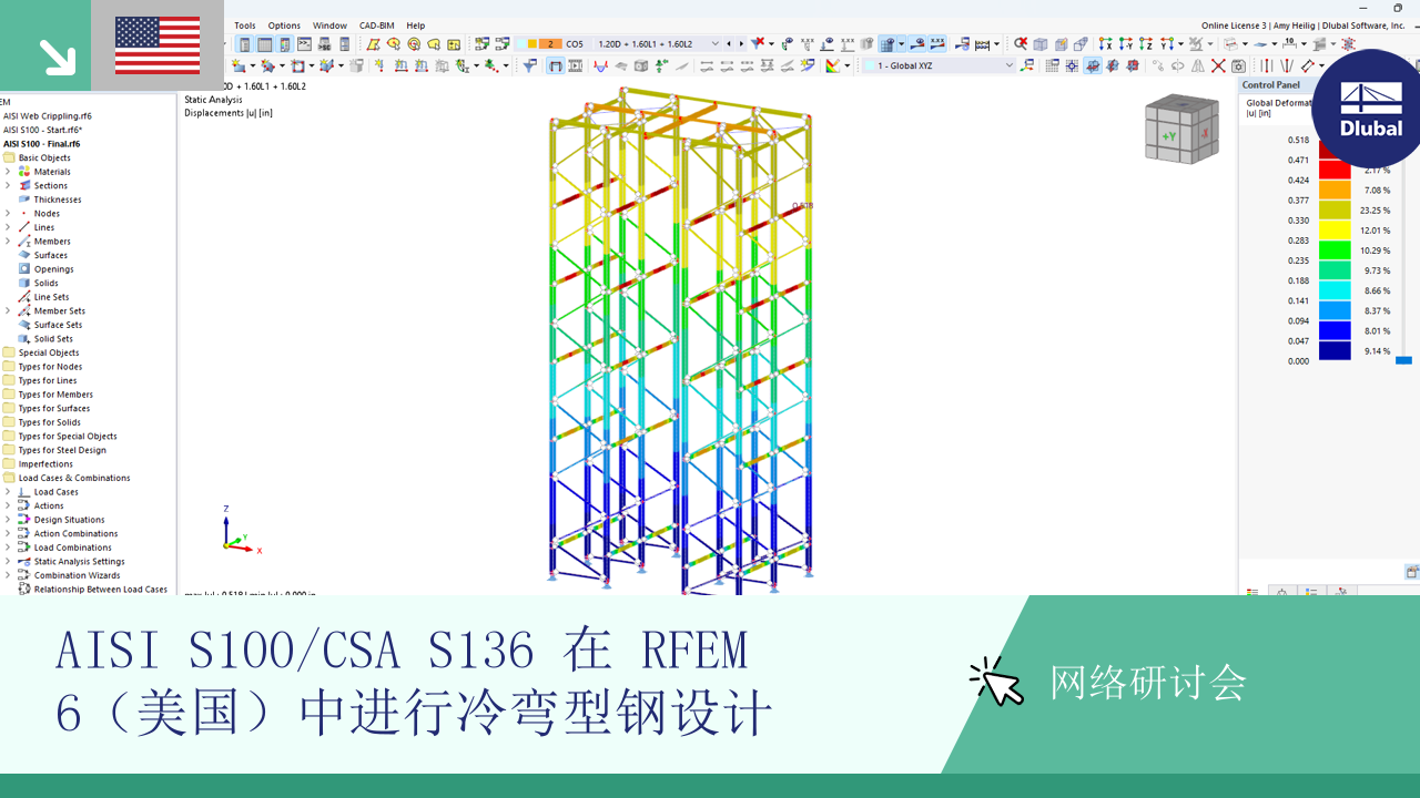RFEM 6 中的 AISI S100/CSA S136 冷弯薄壁型钢设计 网络研讨会
