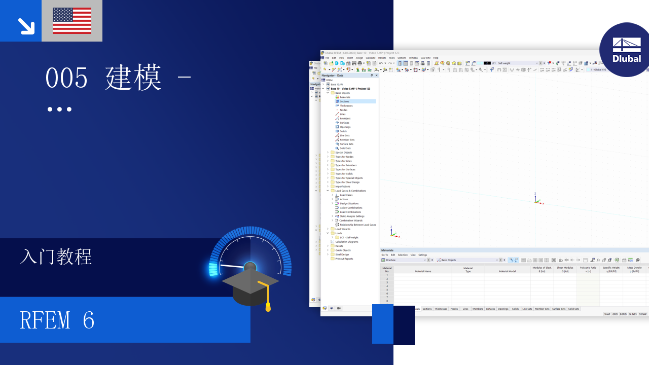 RFEM 6 入门教程 | 005 建模 | 工作平面 | 栅格点 | 切面 | 材质(美国)