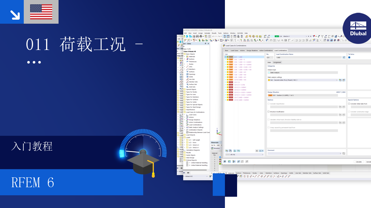 入门教程 | RFEM 6 初学者教程, 011 荷载工况, 设计状况, 组合向导