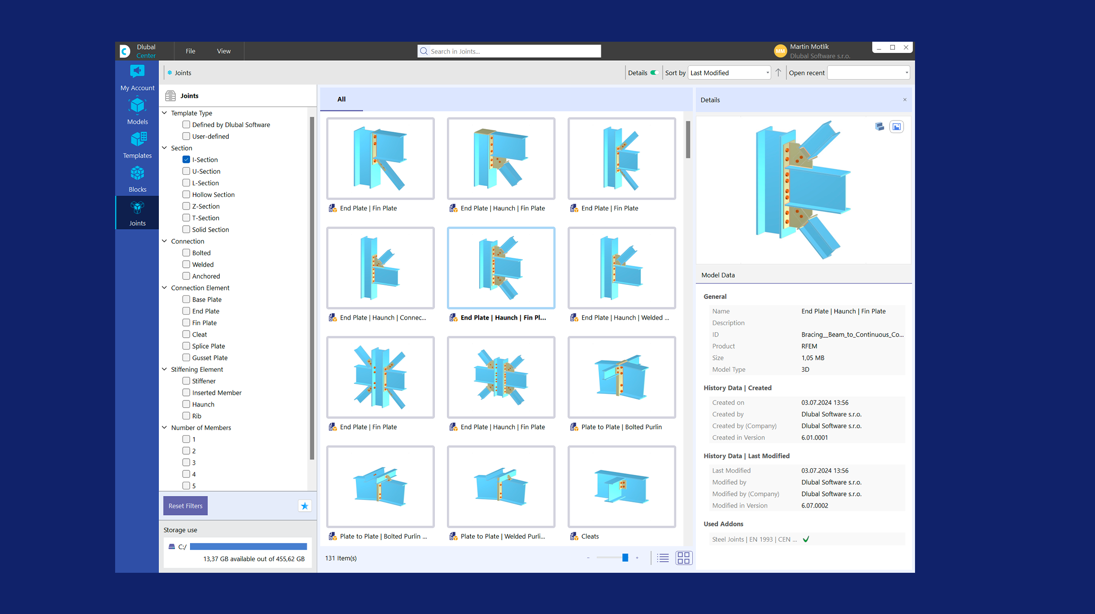 “钢结构节点”模块中的钢结构节点采用规范 EN 1993-1-8(欧洲规范 3,包括国家附录)和美国规范 ANSI/AISC 360-22 进行设计。 进一步的规范将会陆续出台。