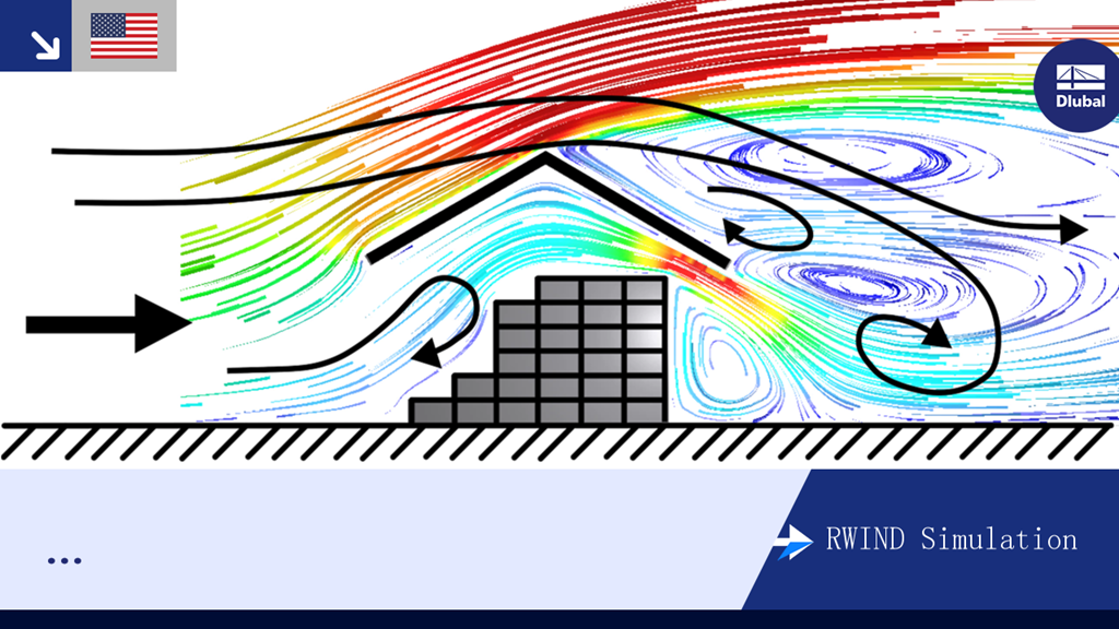 该视频真实地展示了 RWIND Simulation 中的“带顶棚的屋顶上的气流”。 RWIND Simulation 准确计算第三种情况(欧洲规范 EN 1991-1-4,第 7.3 节,图 7.15)中的风荷载(屋盖到顺风向的物料遮挡(φ = 1))的风流,并将荷载传递给 RFEM。