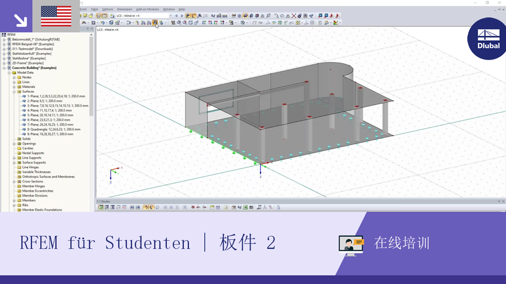 该免费的在线RFEM培训课程软件中通过实例展示了软件的重要功能和建模选项。