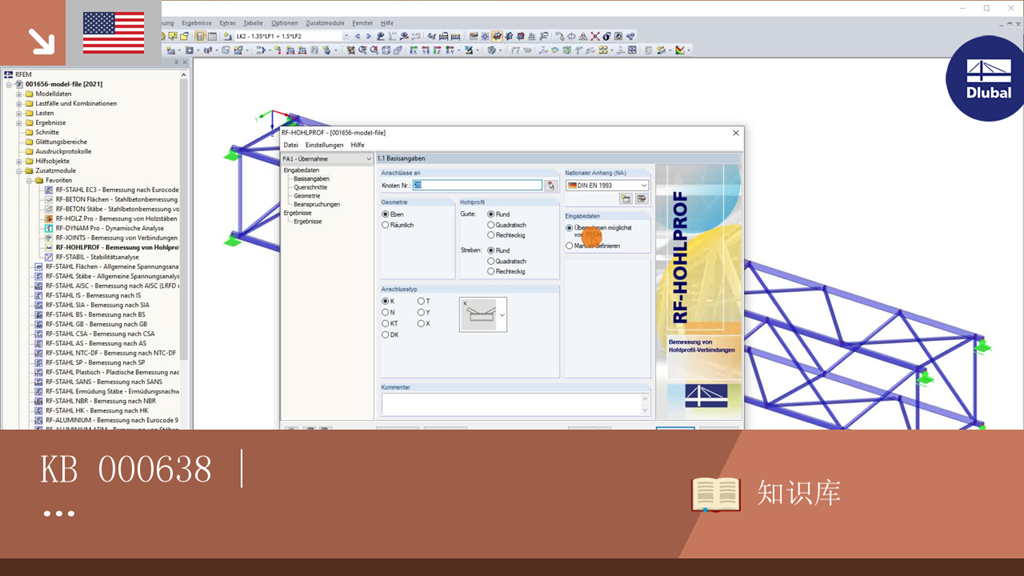 在RF-/HSS附加模块中,您可以分析空心截面连接节点的连接。 RF-/HSS按照EN 1993--8-2005进行承载能力极限状态设计。