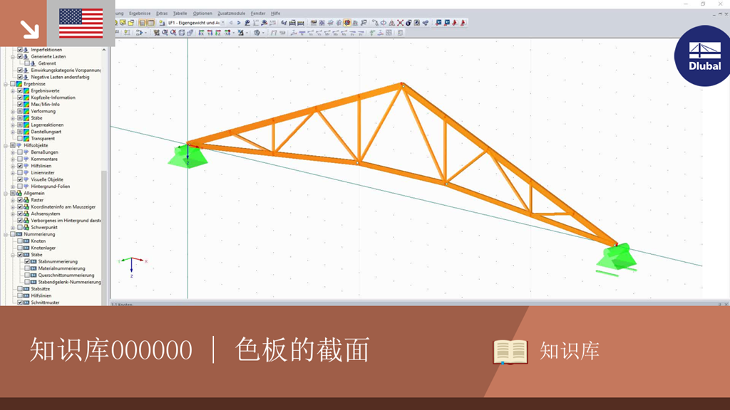 如果想要快速了解杆件的截面属性,可以在杆件上按截面进行颜色分类。 使用工作窗口中的鼠标右键,在上下文菜单中选择“图形根据的颜色”→“交叉 -截面”。 在当前最新版本的软件中,您会使用一个色阶无法控制的面板。