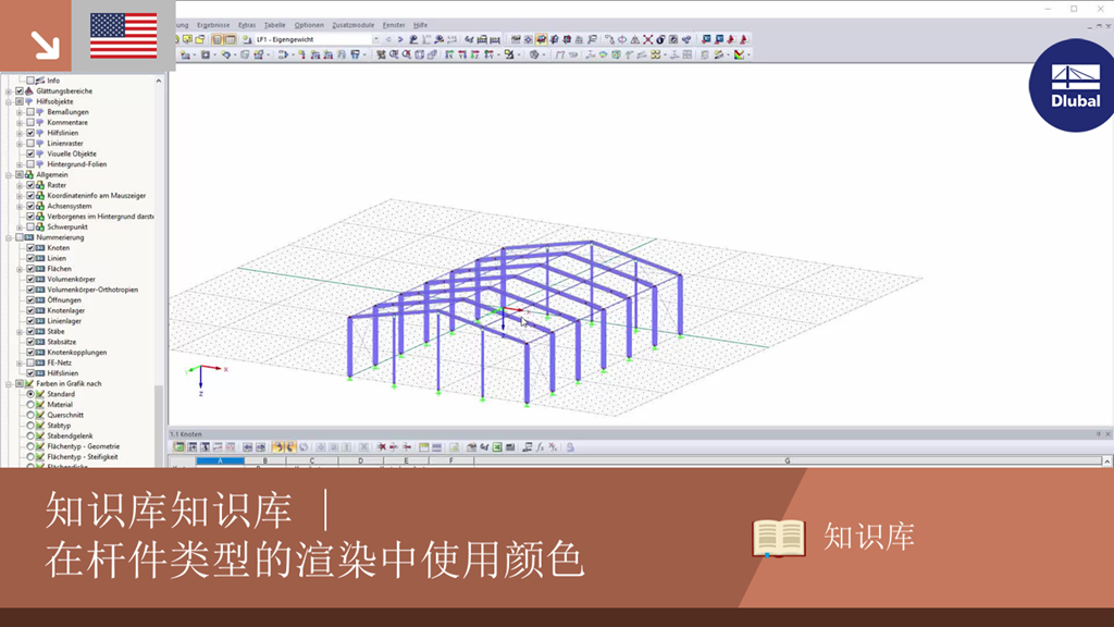 在RFEM和RSTAB中您现在可以通过颜色直观地显示和检查所使用的杆件类型。 在显示导航器中集成了一个选项。