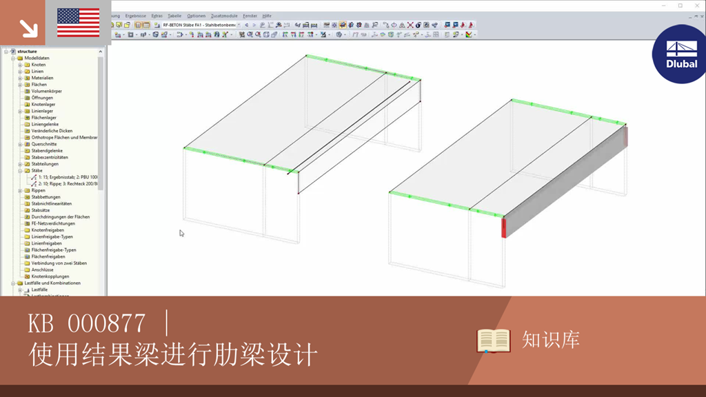 虽然通常在杆件模型上进行下横梁的设计设计,但是也可以使用结果梁对只包含面的模型进行设计。