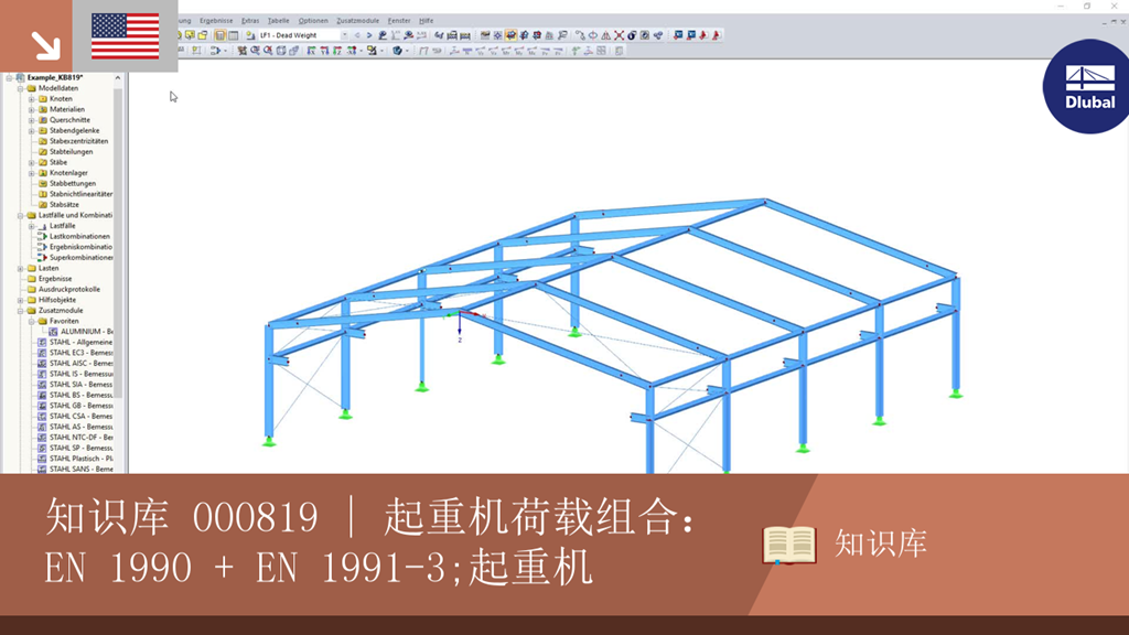 在 RFEM 和 RSTAB 中自动创建组合,使用 'EN 1990 + EN 1991‑3可在“吊车”中选择吊车梁以及结构其余部分的支座荷载。