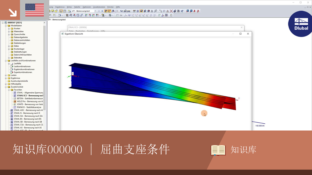 杆件的边界条件对弯扭Mcr的弹性临界弯矩有决定性的影响。 计算时程序使用平面模型进行计算,该平面模型有 4 个自由度。 对于符合规范的截面,可以单独定义相应的系数 kz 和 kw。 用户可以通过该选项卡查看在杆件两端约束条件下的自由度。