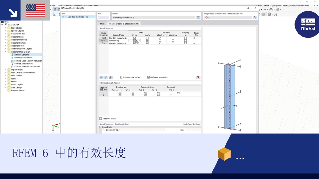 该视频展示了如何分配有效长度。 为了在钢结构设计中进行稳定性分析,必须确定有效长度。 为对象分配有效长度后,将在稳定性设计中考虑这些设置。