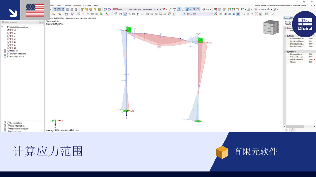 该视频展示了如何计算不同荷载情况下的应力范围。 该任务在 RFEM 6 或 RSTAB 9 中使用附加模块“应力-应变分析”并指定要分析的杆件来完成。
