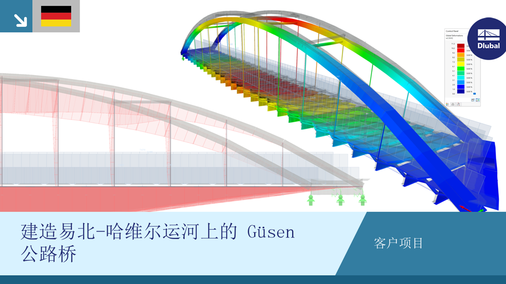 grbv 的工程师们使用附加模块 RSMOVE 在 RSTAB 中生成移动荷载。 此外,在截面属性软件 SHAPE‑THIN 中创建了许多截面。 在视频中将桥梁模型转换为 RFEM 6。