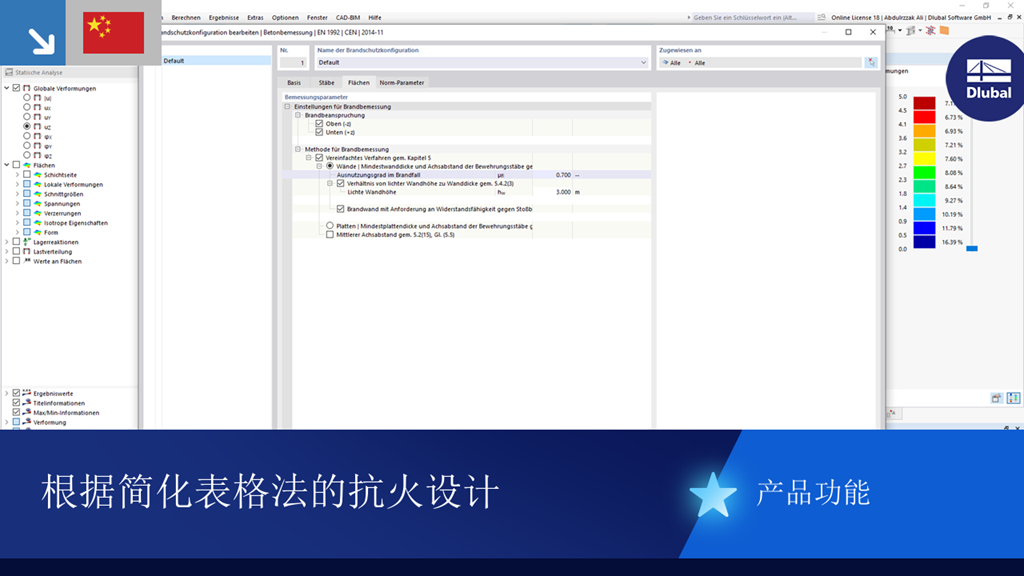 在 RFEM 6 的混凝土设计模块中,可以根据简化表格法(EN 1992-1-2 的 5.4.2 以及表 5.8 和 5.9)对钢筋混凝土墙和楼板进行抗火设计。