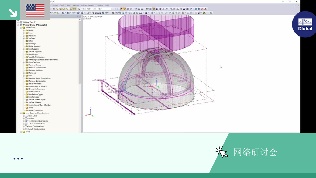 - 在RFEM中对混凝土穹顶进行建模,加载和分析