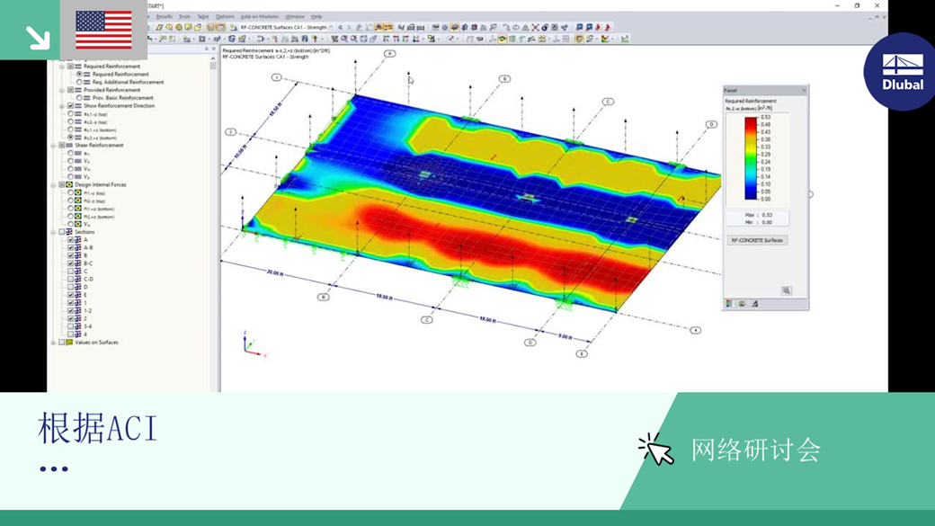 - 使用附加模块RF-CONCRETE Surfaces按照ACI 318-14进行极限承载力状态验算和正常使用极限承载力验算