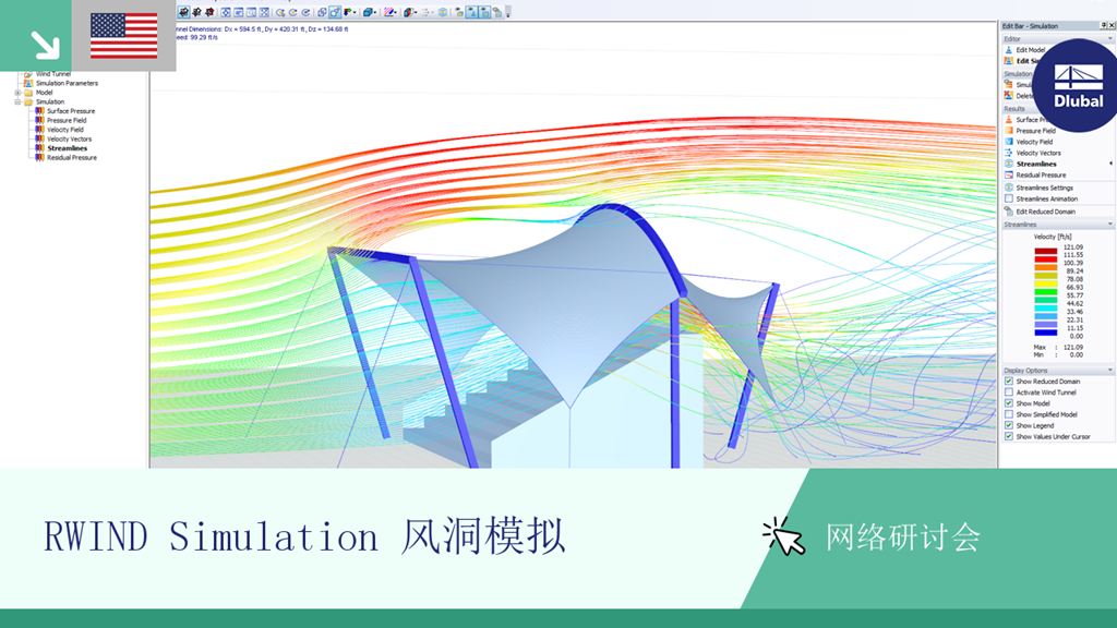 该网络研讨会演示了RFEM中拉伸膜结构设计的一般工作流程,包括使用RWIND Simulation进行CFD风荷载分析。