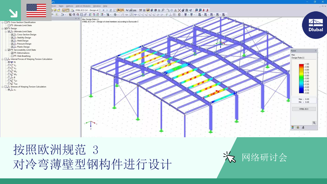 该网络研讨会将演示如何在 RFEM、RSTAB 和 SHAPE-THIN 9 中按照 EN 1993-1-3 和 EN 1993-1-5 设计冷弯型钢截面。