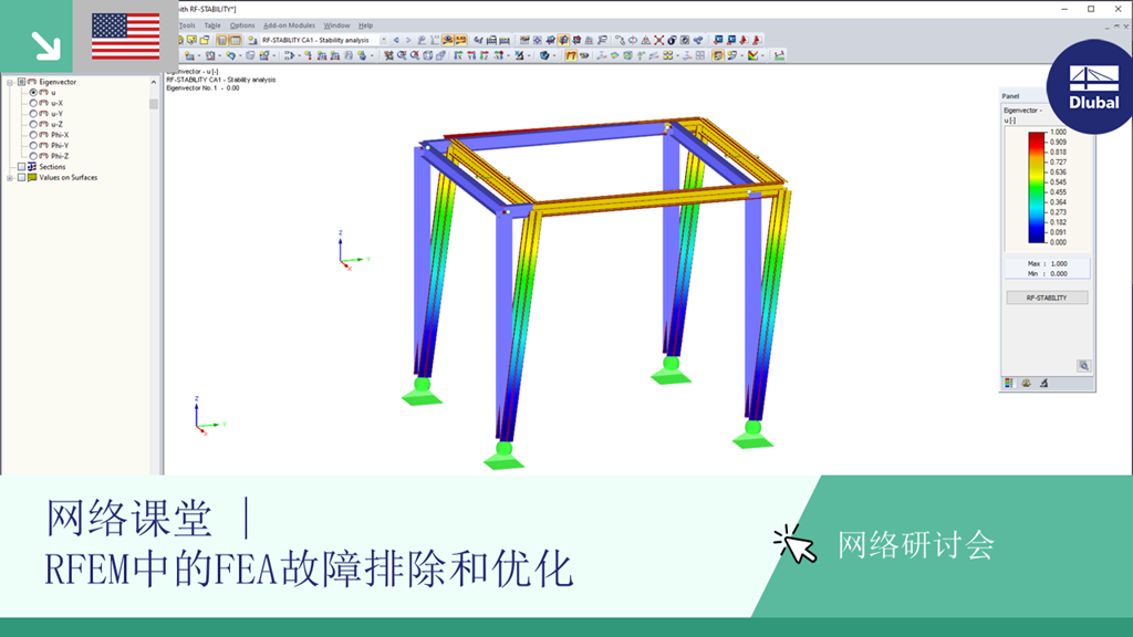 该网络研讨会演示了如何在RFEM中使用有用的工作流程和方法对有限元分析建模错误进行故障排除,同时优化模型输入。